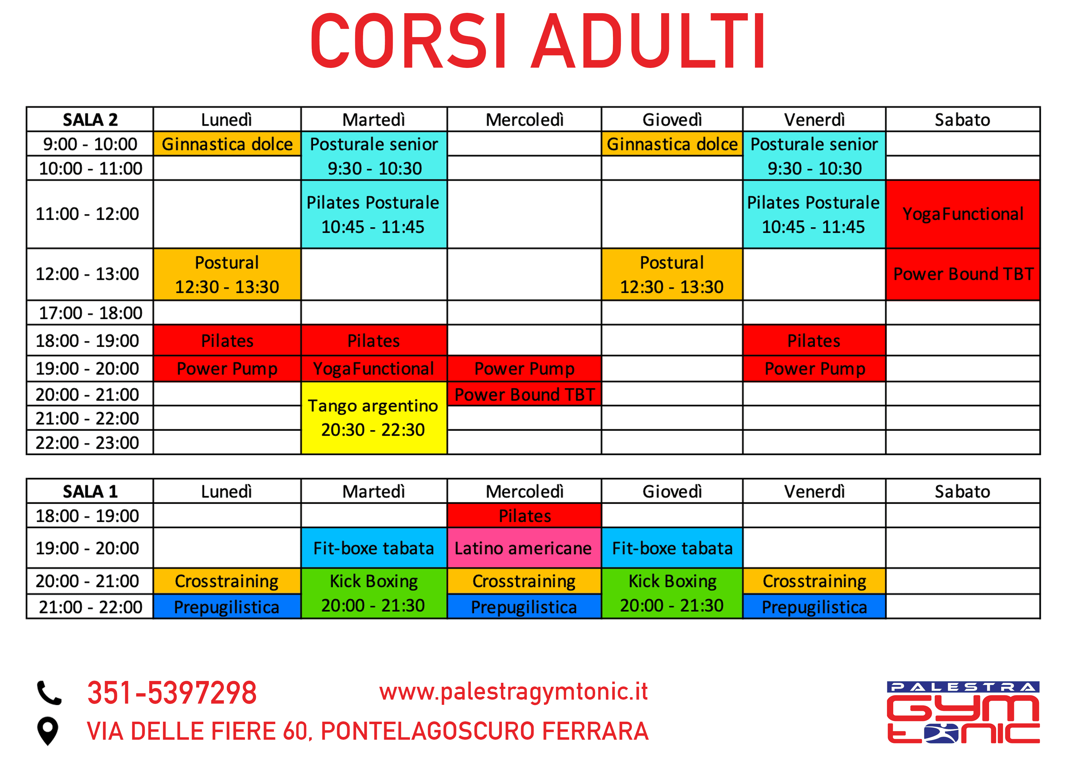 Benvenuti alla nostra selezione di corsi per adulti, progettati per soddisfare ogni esigenza di fitness e benessere. Offriamo una vasta gamma di opzioni, tra cui Pilates, Yoga-Fit, Piloga, Power Pump, Power Bound, PBBS, Walking Exercise, Box Hiit, Cross Training, e Fit Boxe Tabata. Che tu stia cercando una pratica tranquilla o un allenamento ad alta intensità, abbiamo il corso perfetto per te. Unisciti a noi oggi e inizia il tuo viaggio verso una vita più sana e attiva!